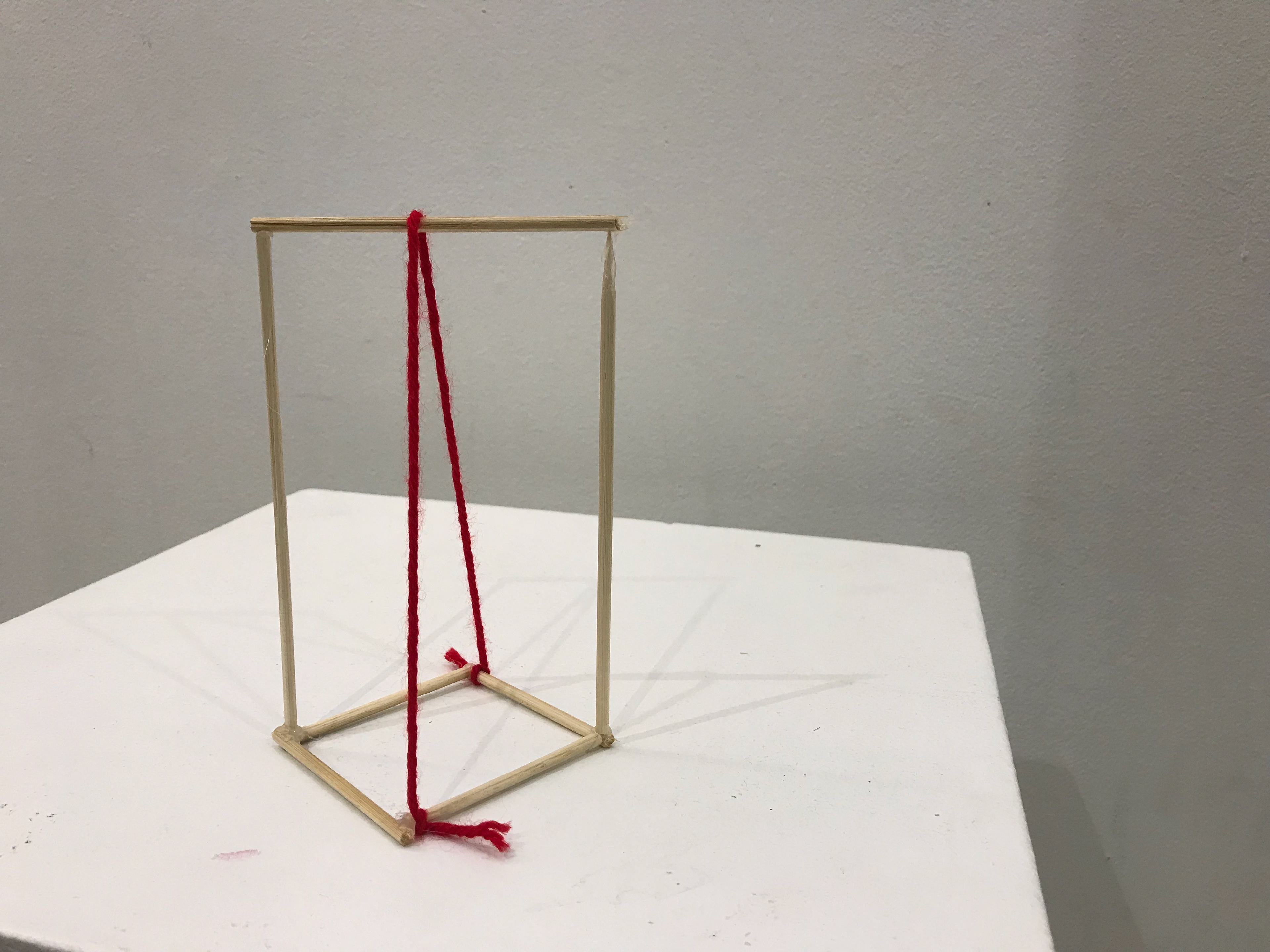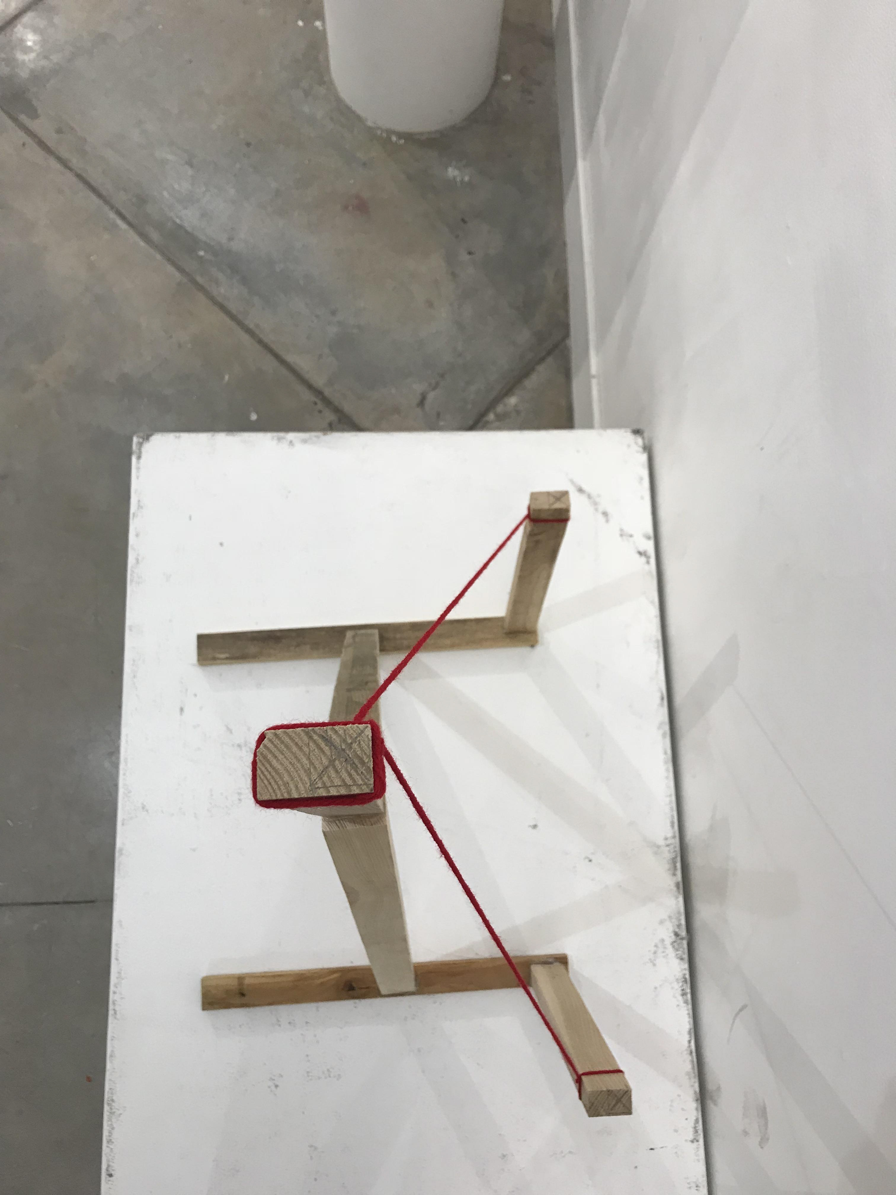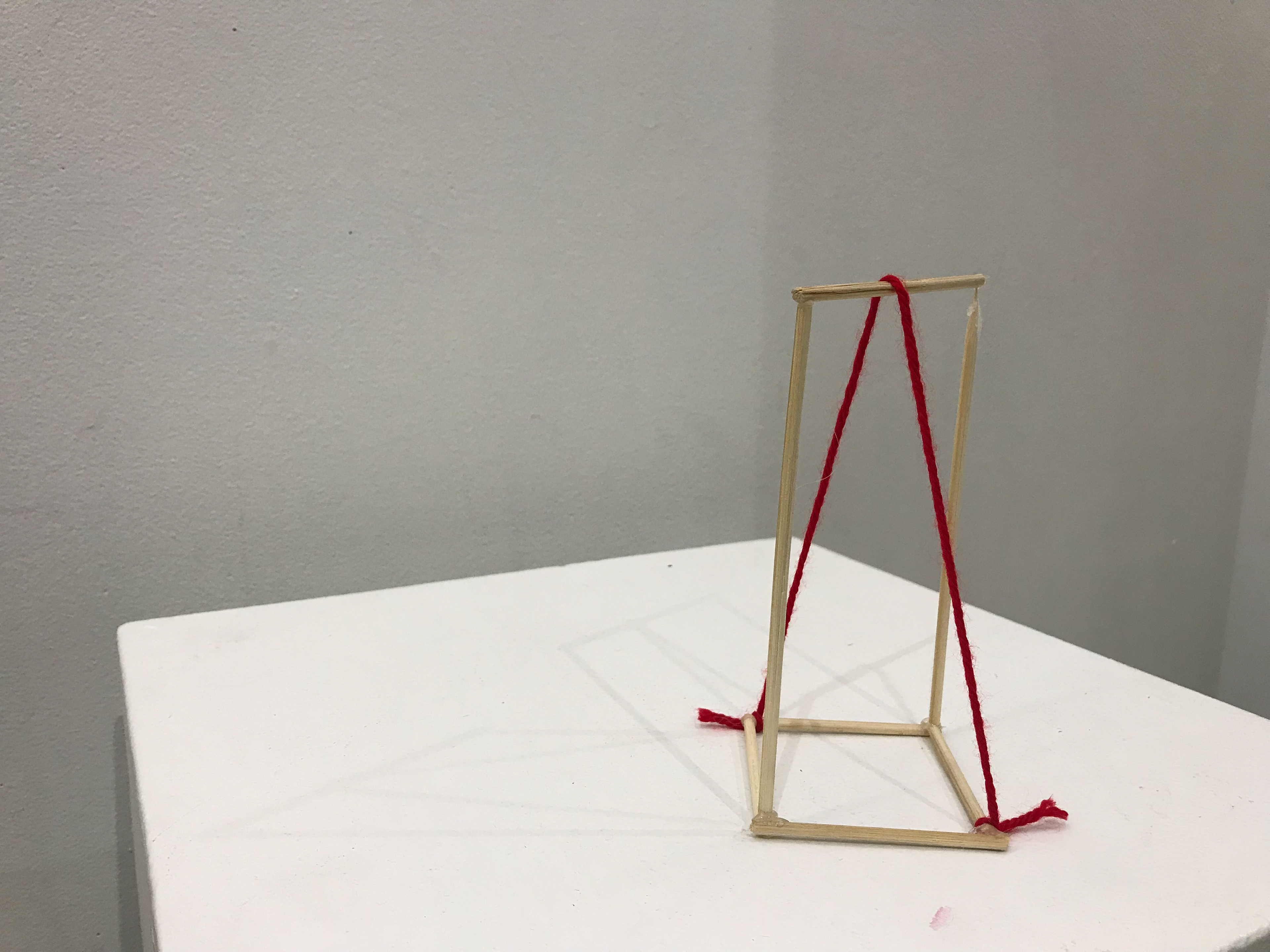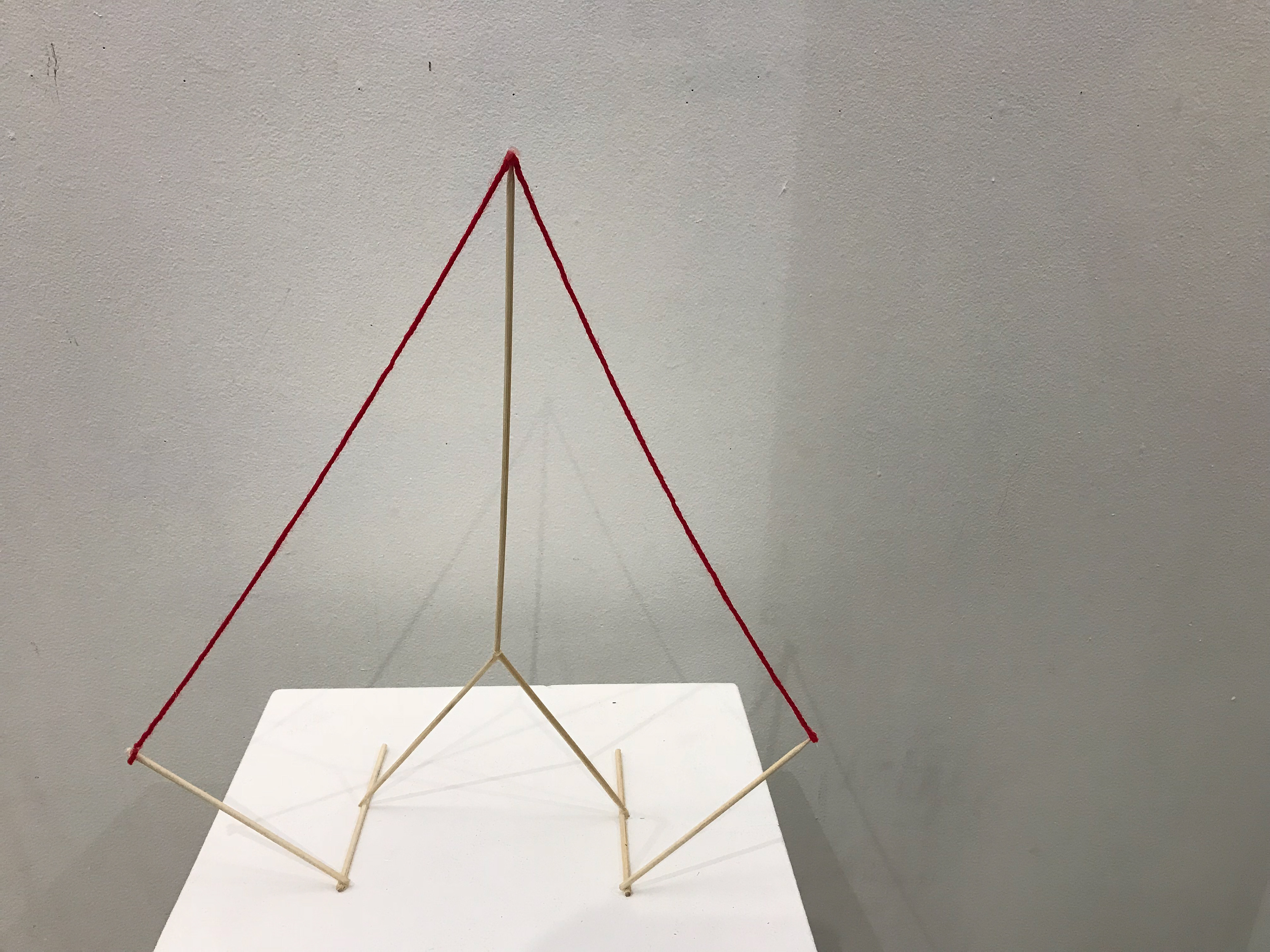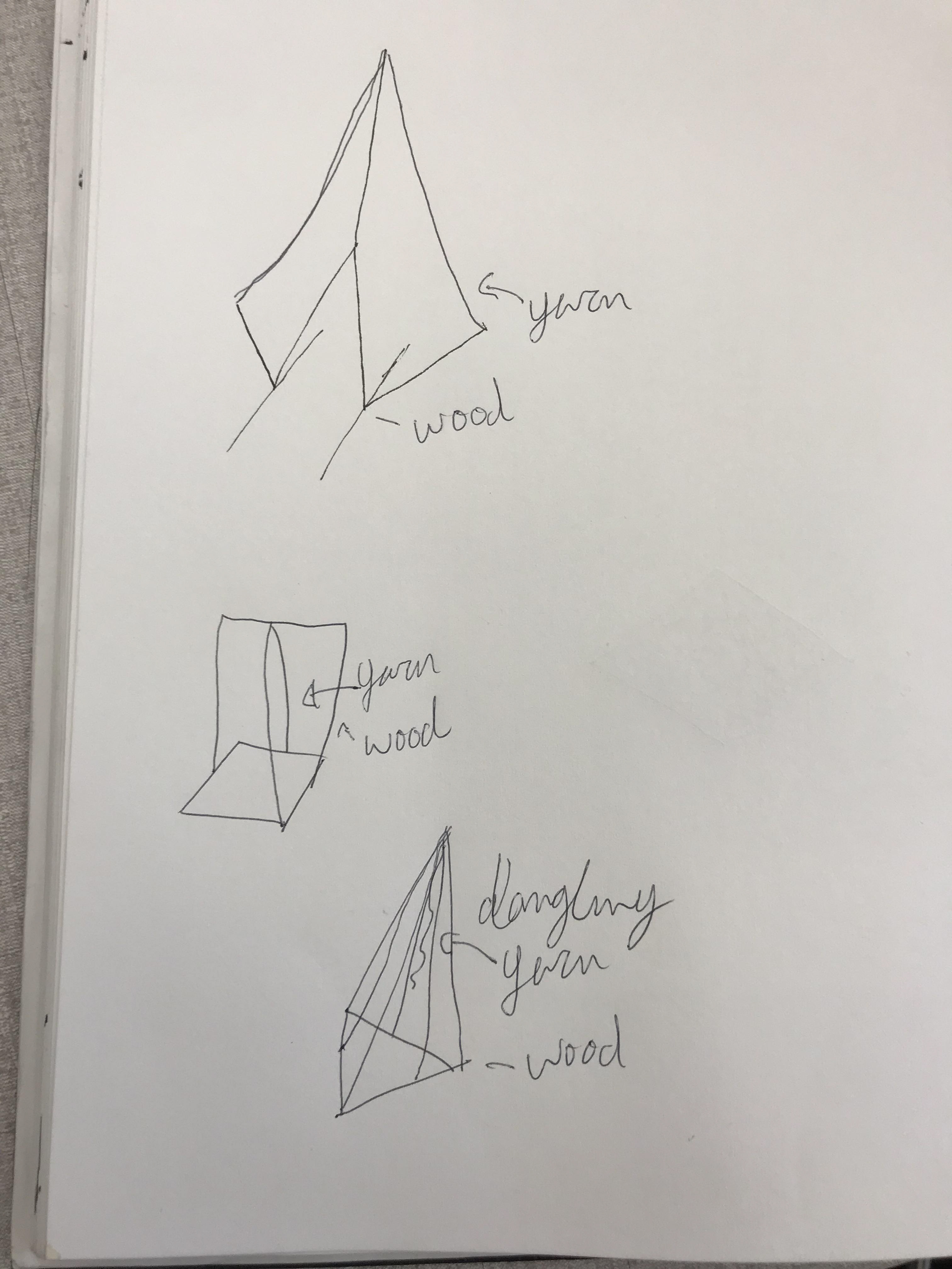 Quick prototypes using wood sticks, yarn, and mylar paper.