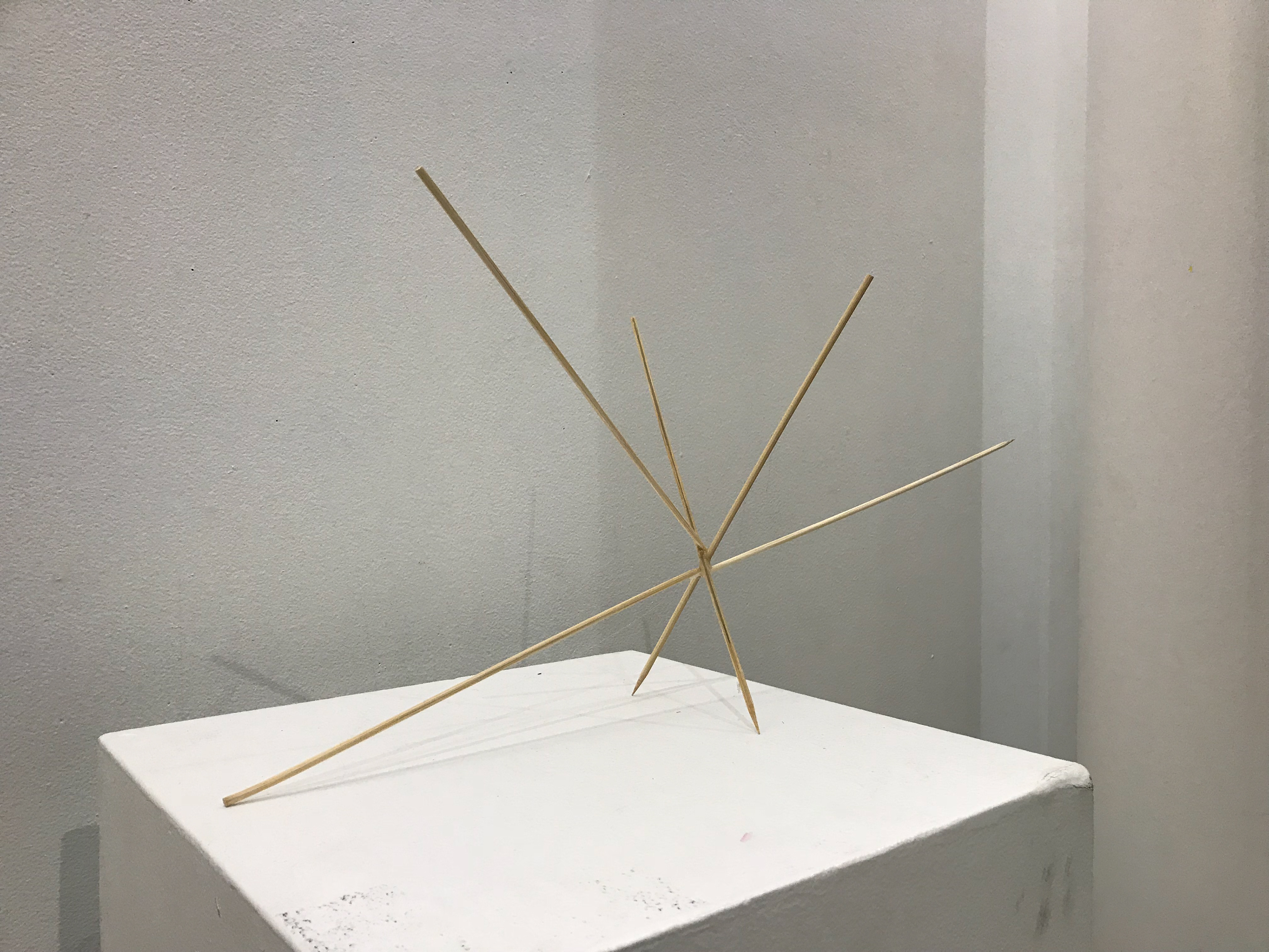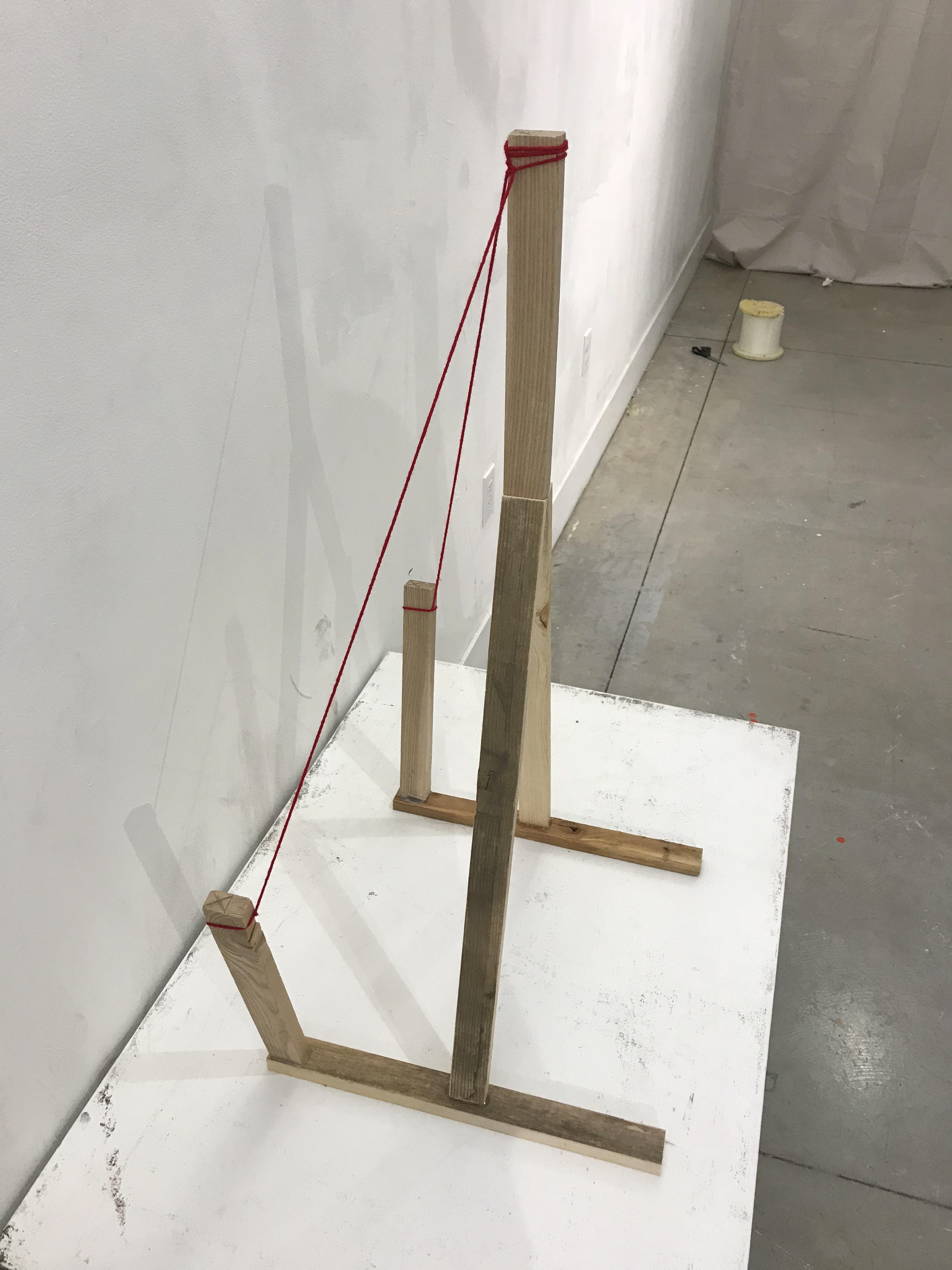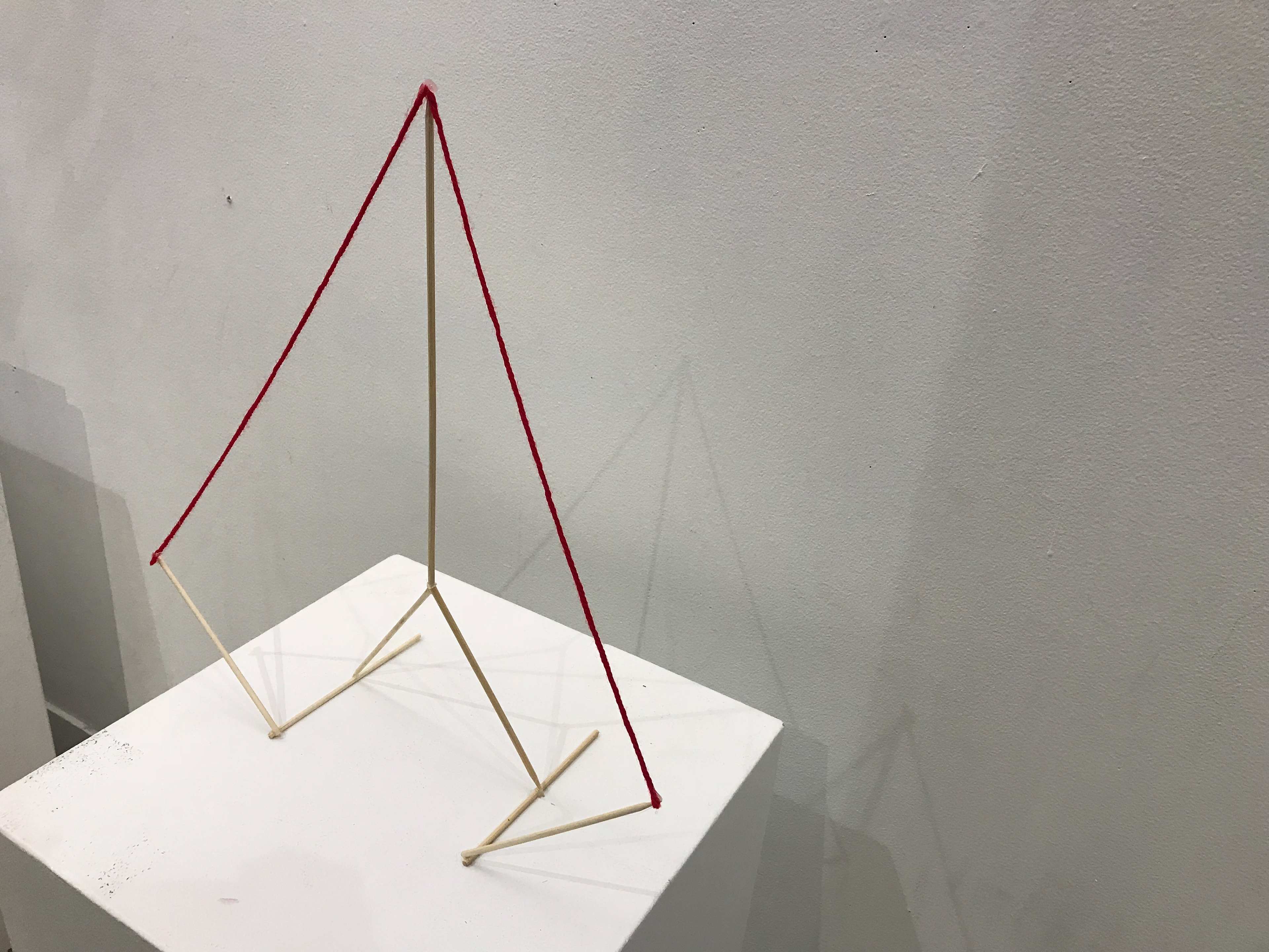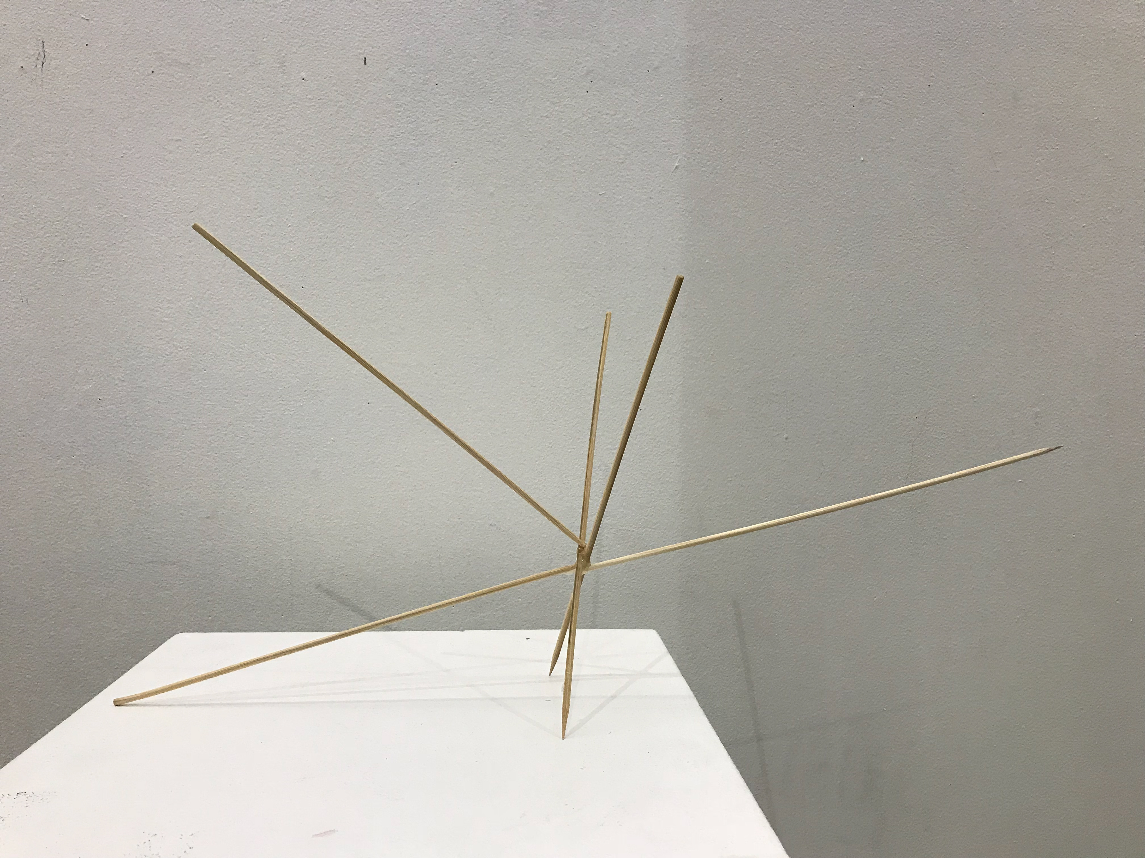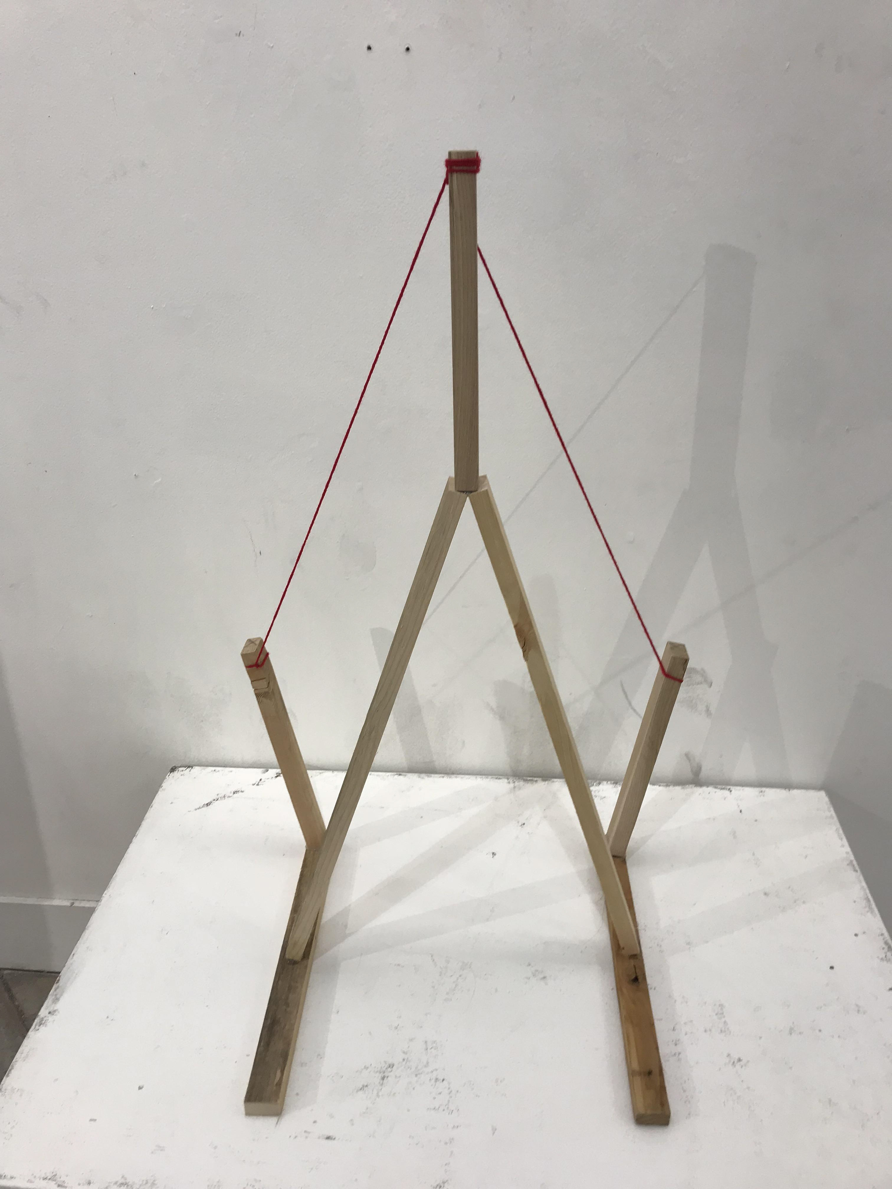 Quick prototypes using wood sticks, yarn, and mylar paper.