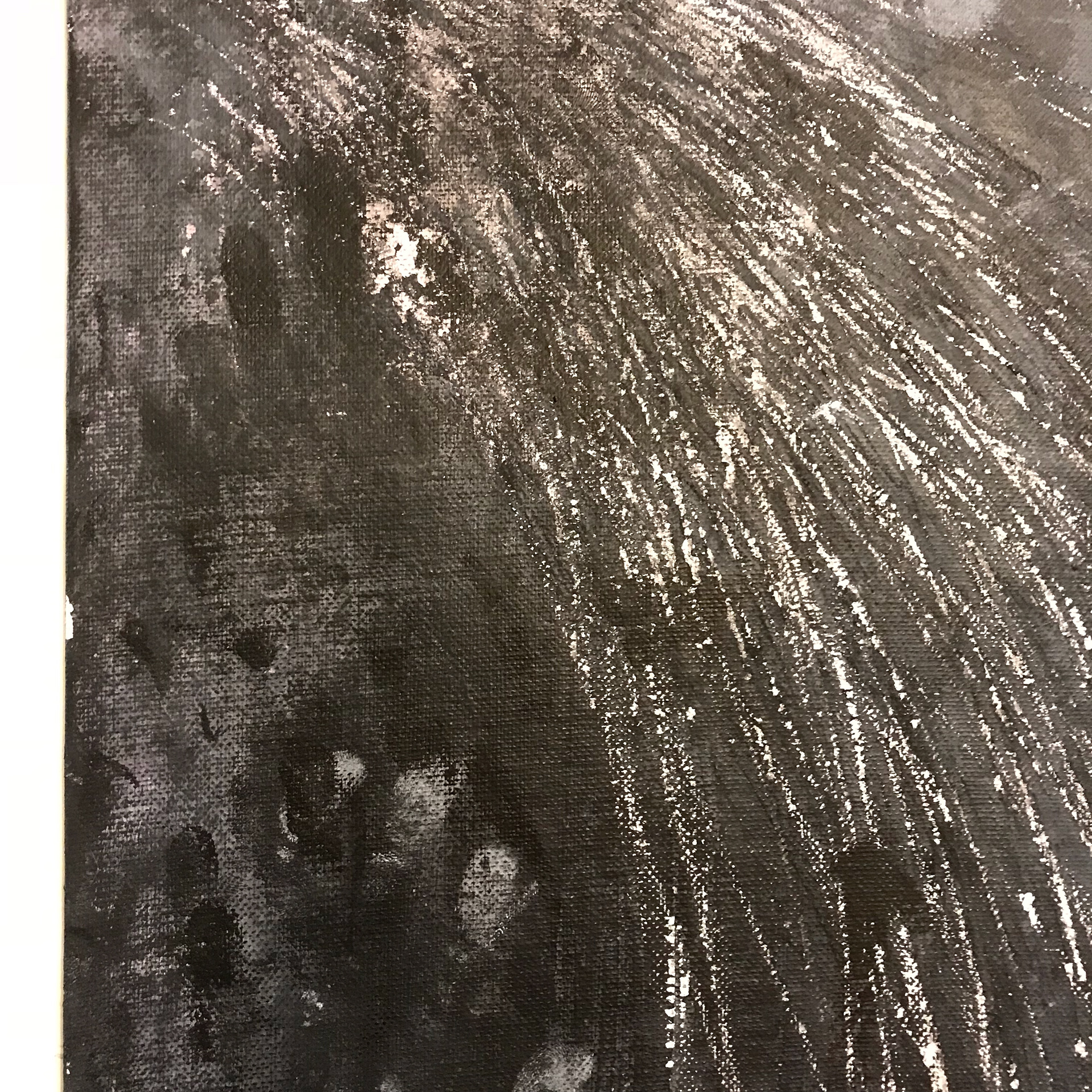 Fingernail is a piece that exemplifies a truly raw energy. Painted completely with the artist's hands this piece was layered with ink and acrylic and then aggressively scratched through with fingernails. Fingernail scratching is often a natural response to entrapment, this piece reflects failed attempts at escape and the urgency associated with desire for change.