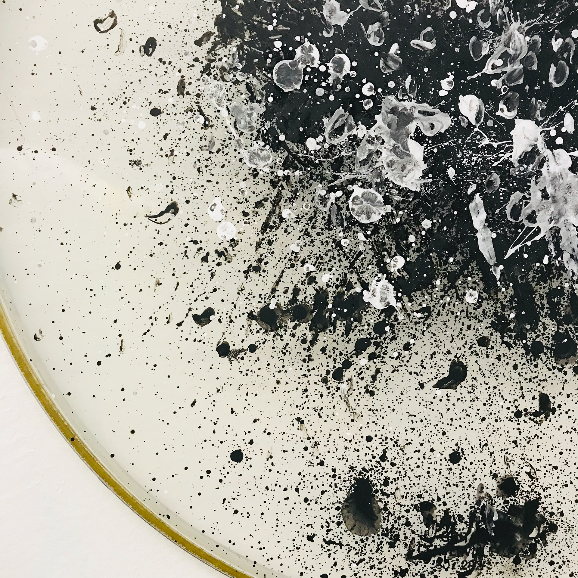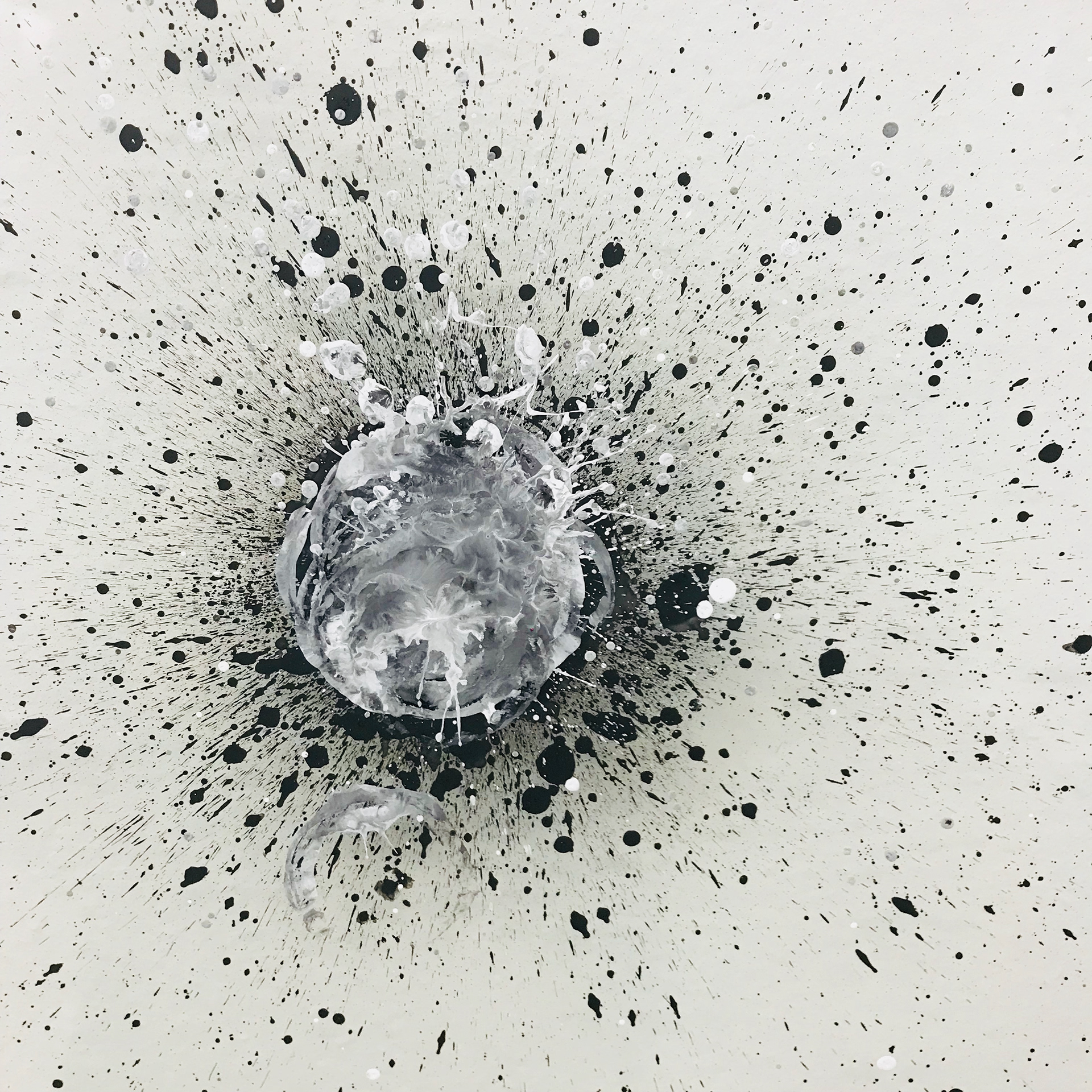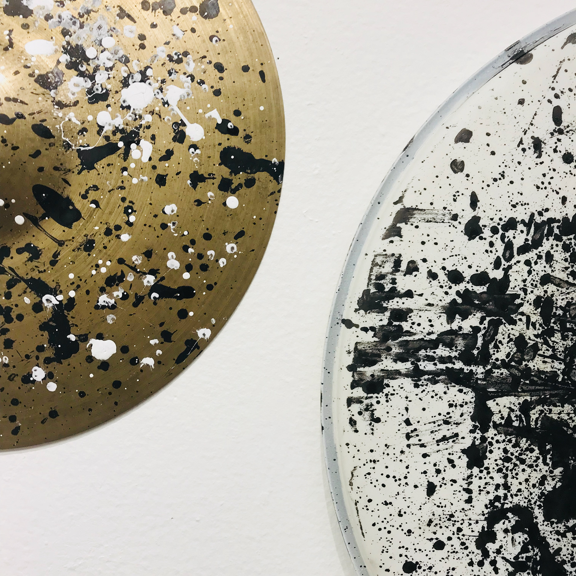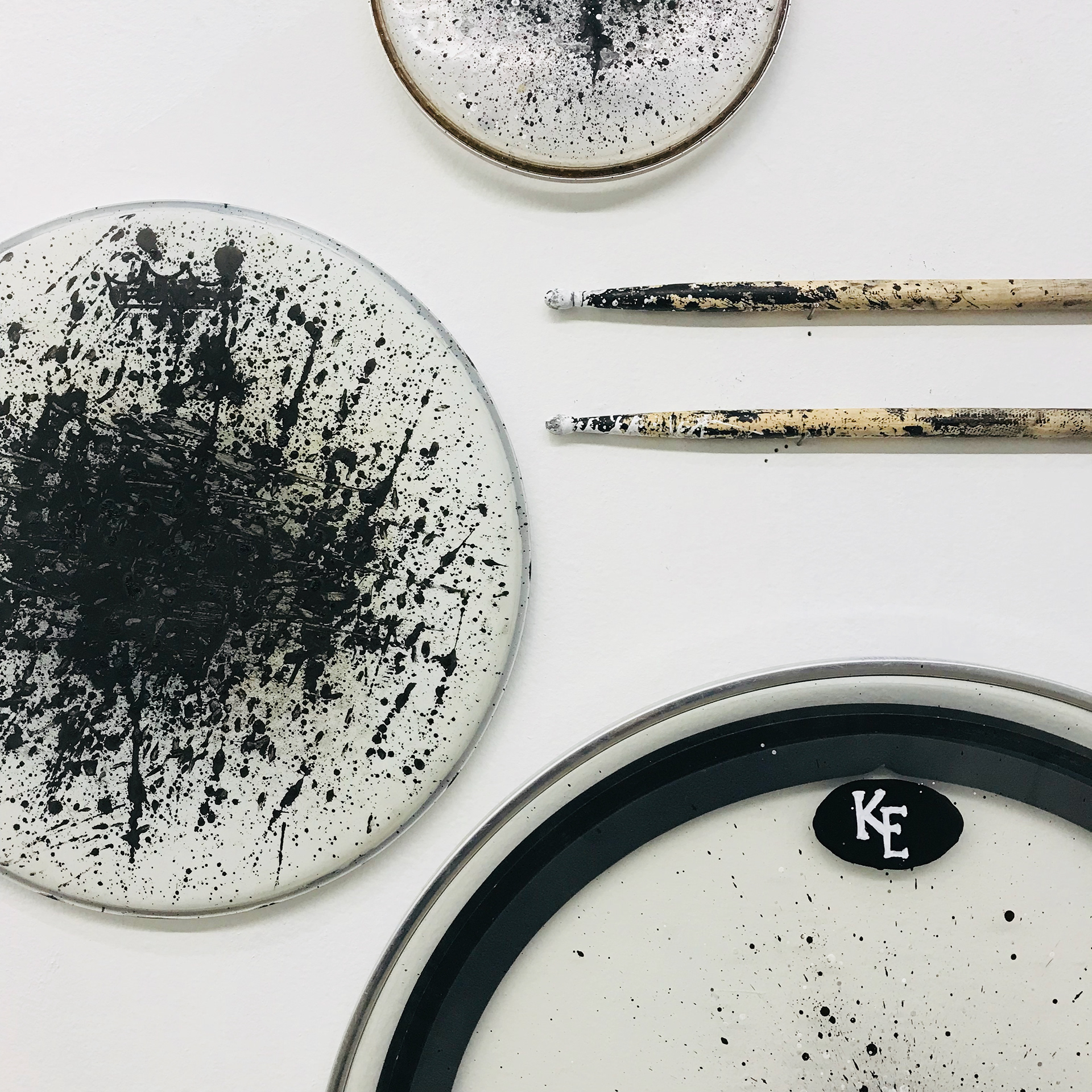 Rhythm Representative visually represents the energy of an audible instrument. This piece was created by first dipping drumsticks in ink and proceeding to hit the drums as they would naturally be struck in performance. Music is a profound and energetic field and the purest form of music exists only as it is being performed, this piece snapshots the energy of performance in a visual space.
